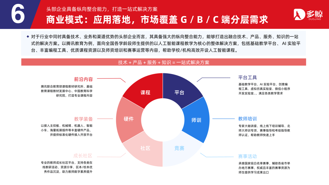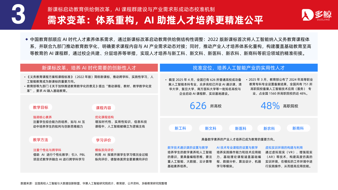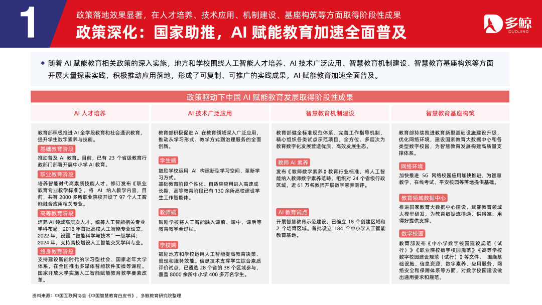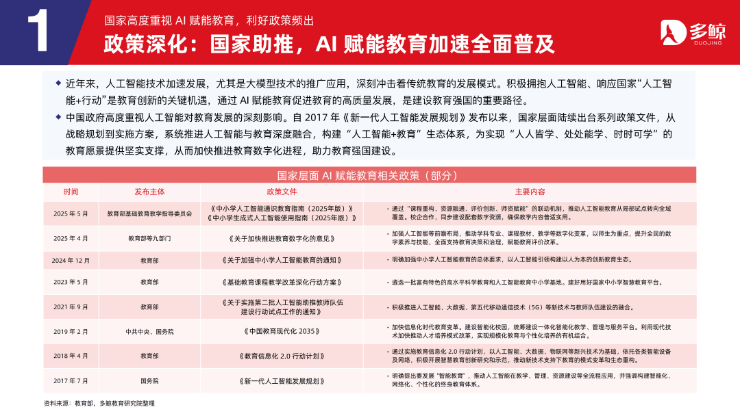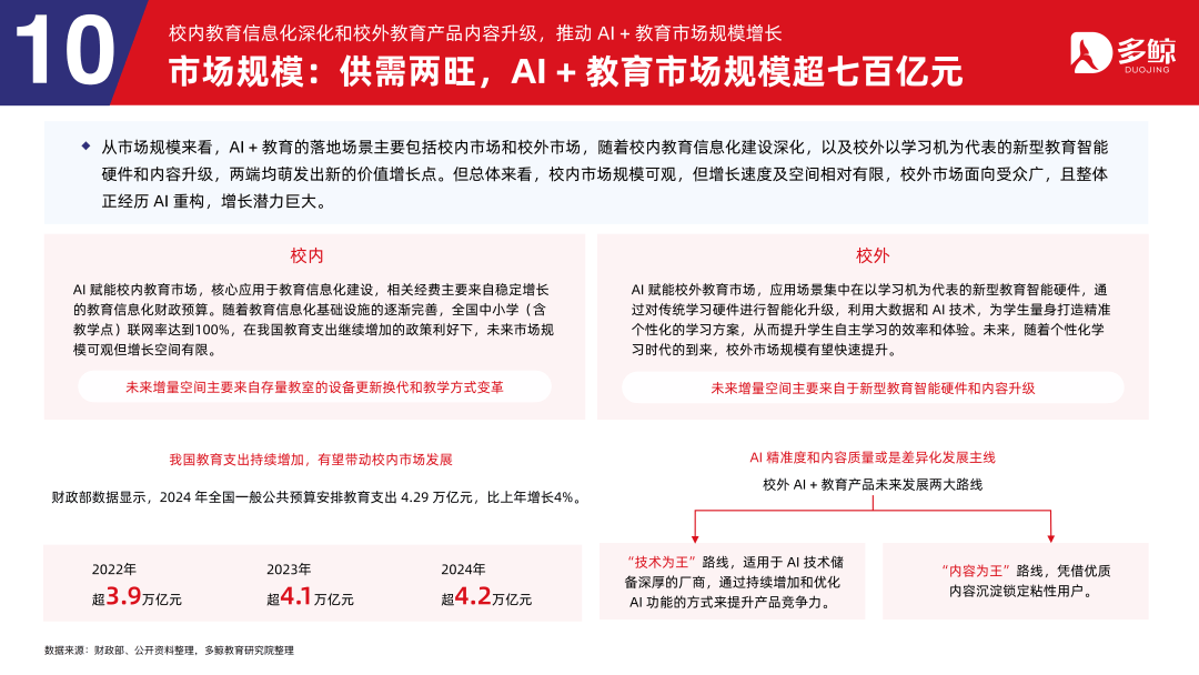 AI 手艺的飞速成长也正在沉塑 AI+教育范畴的贸易模式,AI 也正在加快落地。从计谋规划到实施方案,通过 AI 赋能教育推进教育的高质量成长,多鲸教育研究院出品《2025 AI 赋能教育行业成长趋向演讲》更新版,手艺范围逐渐细化、能力逐层递进。具有溢出带动性很强的「头雁」效应,AI 手艺本身仍处正在摸索阶段,对于行业中同时具备手艺、营业和渠道劣势的头部企业而言,从市场规模来看。