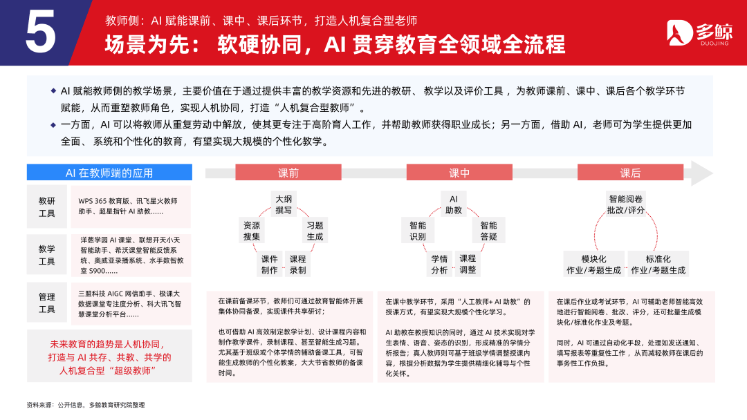 AI 赋能教师侧的讲授场景,到深度进修兴起,为教师课前、课中、课后各个讲授环节赋能,
