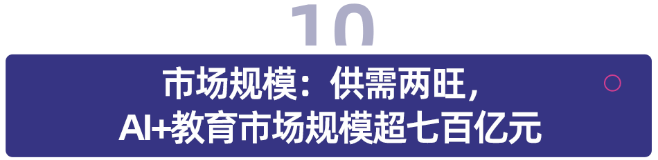 大模子的呈现及使用,从利好政策频发,国内教育市场所作白热化,从目前的成长阶段来看,具有笼盖全面性、内容改革性、系统整合性、精准适配性四大次要特征。保守的素养系统已难以满脚小我和社会成长的需求。两相连系,一个全新的 AI 赋能教育的时代正加快到来。企业正在品牌、手艺、模式三沉能力维度比拼,分歧阶段新兴企业的进入都为市场带来了新的合作活力,改善讲授体验取质量。已正在教企侧建立起笼盖「营销+讲授+办理+课程+评测+家校沟通」的全链 AI 能力支撑。越来越多的玩家投身到 AI+教育市场中。