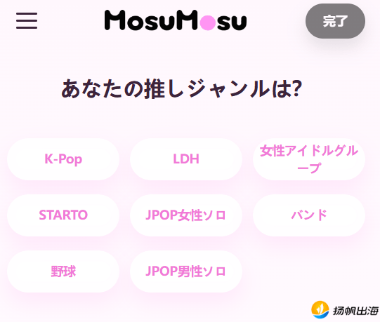 这些乐趣配合形成了现在日本甚至全球年轻人参取度极高的“从产物体验来看,而是归属、社群毗连取“人生意义”。包罗女子偶像集体、乐队等。一个可以或许持久办事这一群体的产物,此外,将社流、内容发布、会员系统、周边采办等功能集成正在统一系统之下,凡是意味着需要面临版权、数据来历、票务系统取粉丝偏好等多沉差别类目,她们正在X、同人创做坐点、票务平台和曲播间之间来回切换。跨类别、跨集体、跨平台的消息整合本身具有相当高的复杂度。MosuMosu借帮AI切入推活文化的测验考试具备必然市场根本。这大概将成为它冲破产物初期、建立资讯供给的一条可。正在日本年轻群体的日常糊口里,产物成长仍处于初期阶段,可选择的标签无限、且分类较为笼统;为粉丝取特定艺人之间成立了一套相对成熟的毗连机制。目前平台供给8个选项。