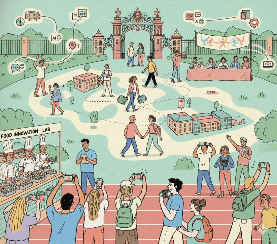 查文献、列提纲、跑数据、润言语,有人专看博物馆,到校际互逛研学、师生共创食堂焕新,讲授楼当片场、AI当“后期”,师傅按节气外出“探店”。